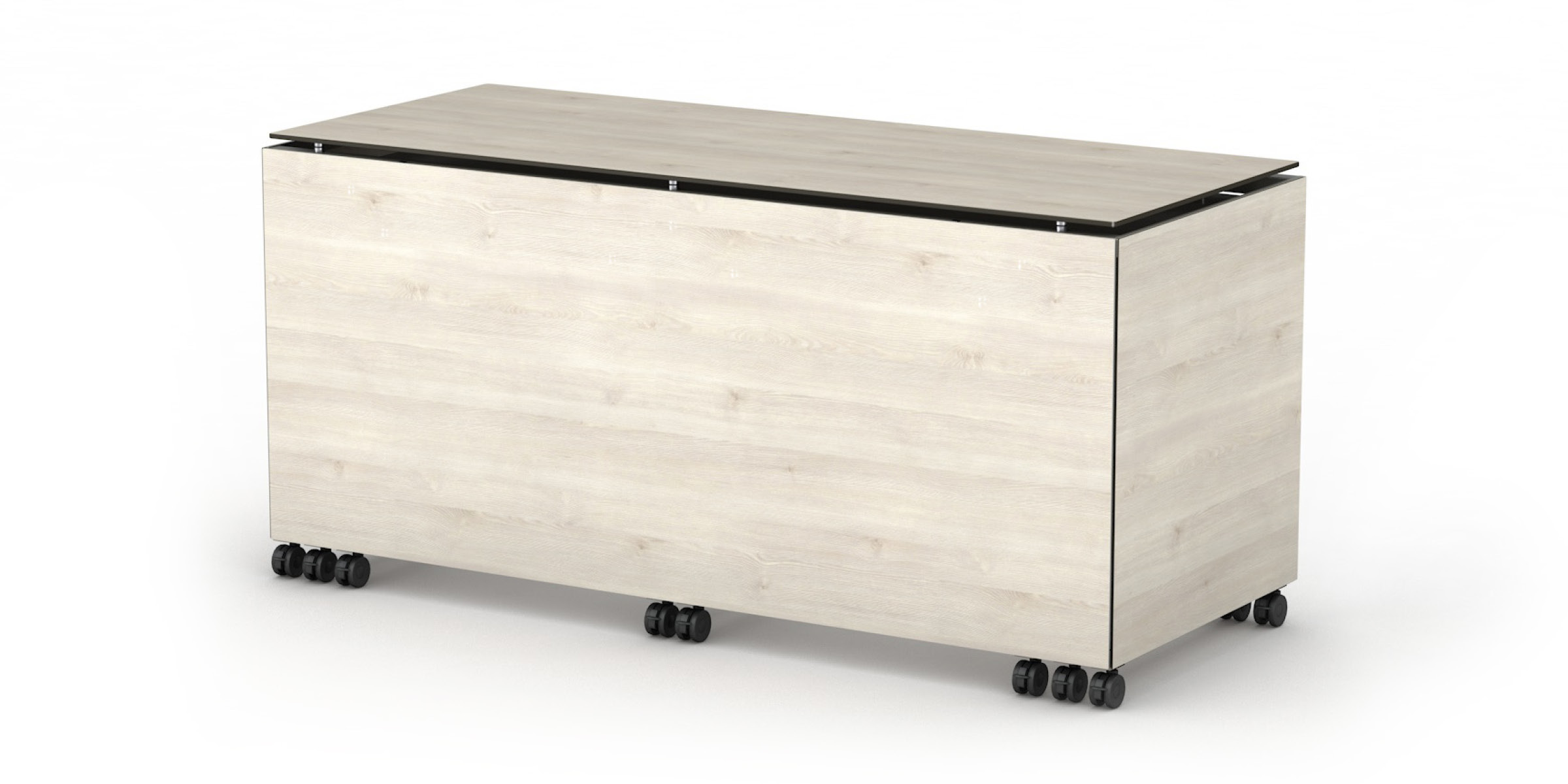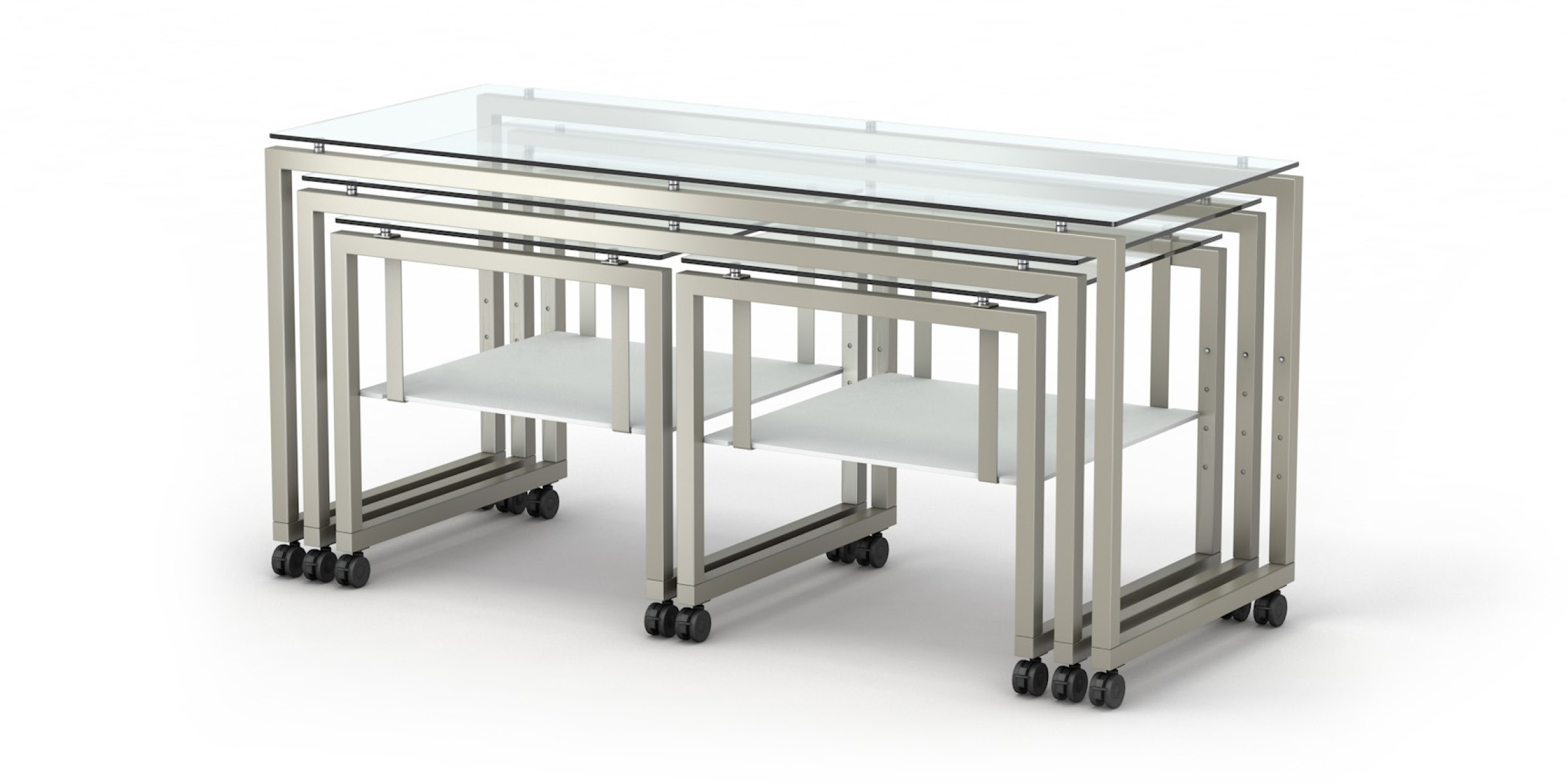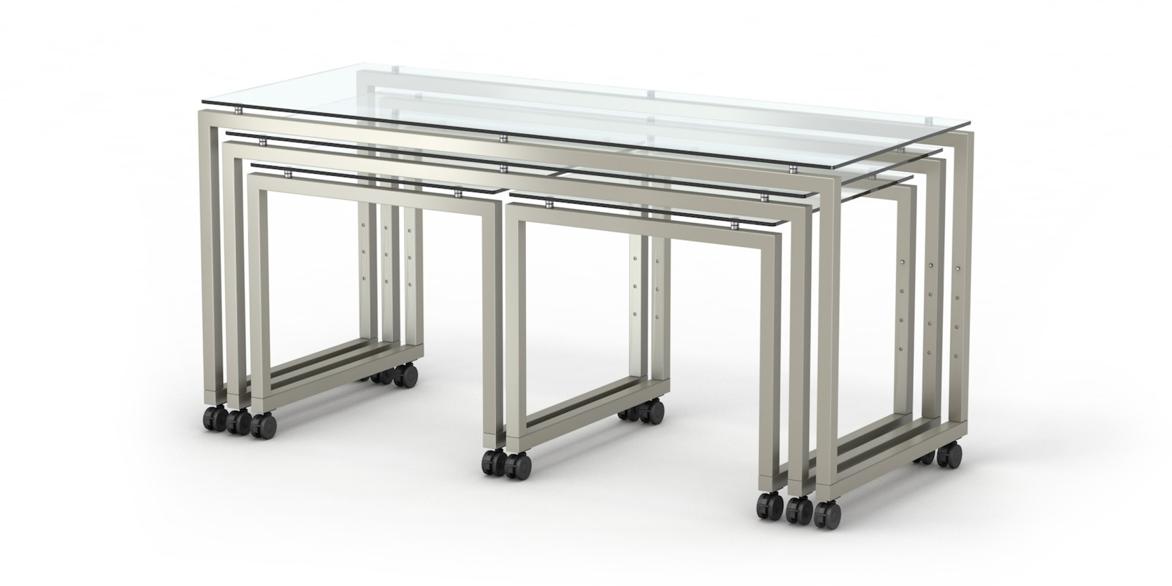 Each STAGE table is equipped with castors, which are an essential advantage for practical use. This allows the tables to be moved easily in the room and to quickly combine many different setups. The tables are available in three different castor sizes: